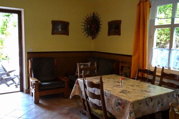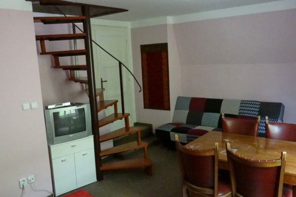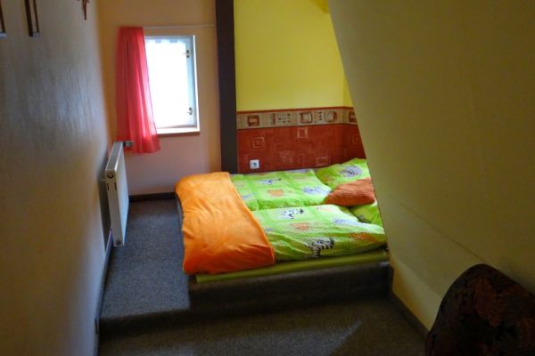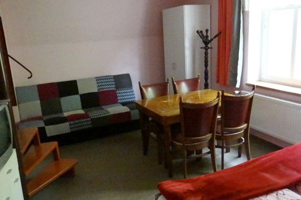 3. dvoupokojový mezonetový - velký 2 lůžkový pokoj s rozkládacím lůžkem pro 1-2 osoby (140x200cm) a vlastní koupelnou + menší pokoj pro 2 osoby (po schodech nahoru)
